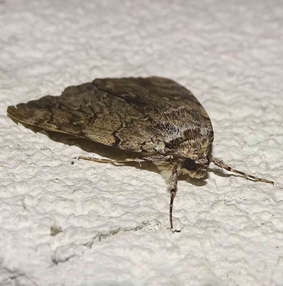 Die Eier werden auf die Rinde des Stammes oder größerer Äste abgelegt. Die frisch geschlüpften Raupen fressen nachts an den Triebspitzen junger Blätter, tagsüber ruhen sie auch darauf. Nach der ersten Häutung findet man sie mit viel Glück, bestens getarnt durch ihr holzartiges Aussehen, eng an Zweige geschmiegt, etliche Zentimeter weg von der eigentlichen Fressstelle. Erwachsenen Raupen verbergen sich tagsüber meist am Stamm ihrer Nahrungspflanze. Die Raupen sind ausschließlich nachtaktiv. Die Verpuppung erfolgt zwischen zusammengesponnenen Blättern.