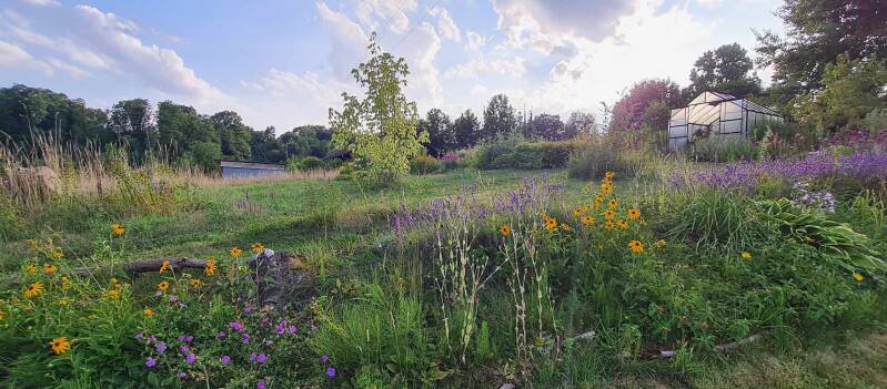 Schlehdorn, Brombeere, Himbeere, Kratzbeere, Heidekraut und weitere niedrige Pflanzen